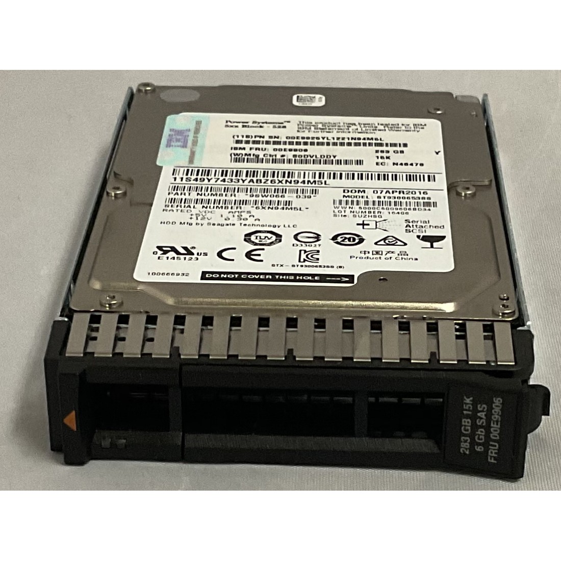 The IBM ELDB 300GB 15K RPM SAS SFF-3 Disk Drive for Power Linux systems has 59E0 CCIN and 00E9906 49Y7433 00E9926 00E9925 00E9912 00FX359 00LY500 part numbers, uses a Small Form Factor Gen-3 carrier/tray. The IBM ELDB 59E0 300GB 15K RPM SAS SFF-3 Disk Drive is formatted for 512 byte sectors, but can be reformatted to 528 byte sectors for IBM i iSeries Power systems providing 283GB of capacity. The IBM ESDA 283GB 15k RPM SAS SFF-3 Disk Drive with 00E9906 49Y7433 00E9926 00E9925 00E9912 00FX359 00LY500 part numbers are identical to the IBM ELDB disk drive and has the same 59E0 CCIN, and may also have feaute code ESDB EKDB ESDV or ELDB.