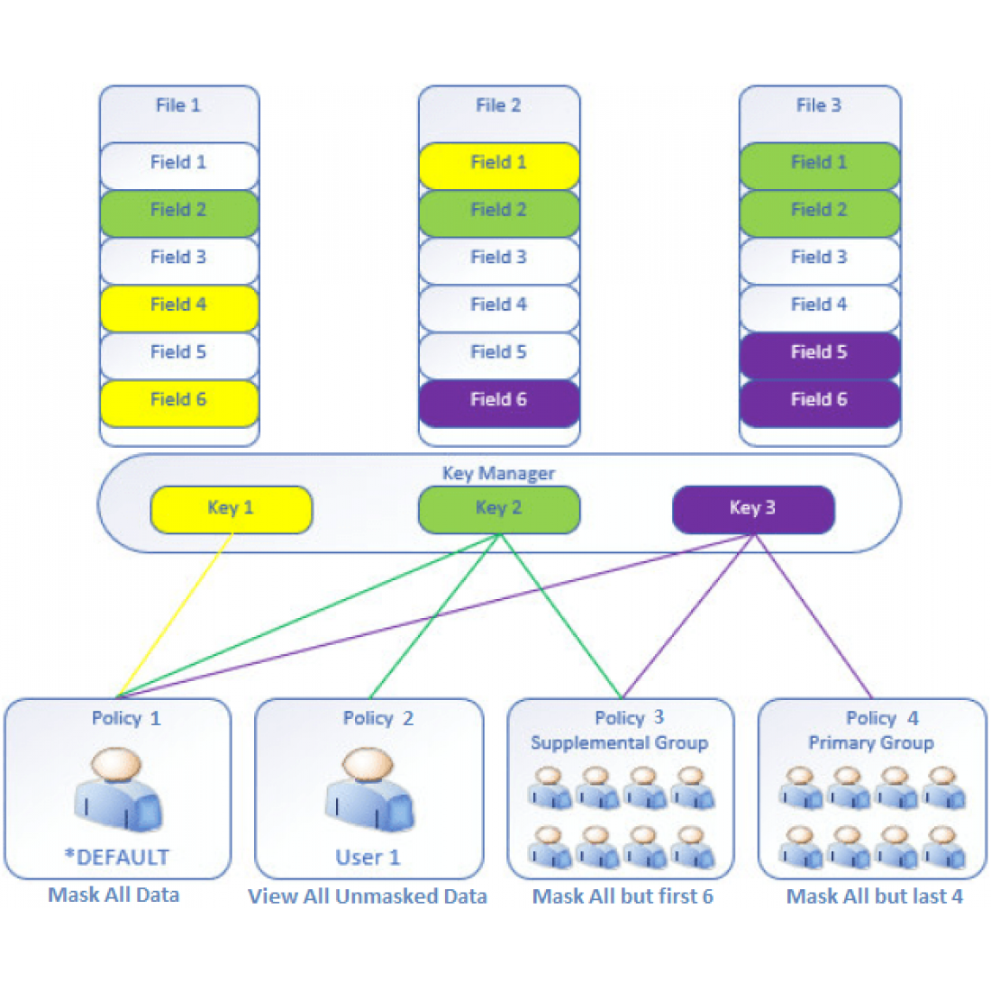 Includes key management with a local key store, and integrates with other third-party OASIS KMIP-compliant key managers