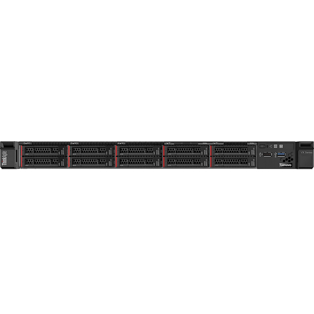 The ThinkAgile VX3320 for compute-heavy workloads is a 1U rack-mount appliance that supports up to two processors, up to 3 TB of 2666 MHz TruDDR4 memory, 6x 2.5-inch SAS/SATA and 4x 2.5-inch AnyBay drive bays with an extensive choice of NVMe PCIe SSDs, SAS/SATA SSDs, and SAS HDDs, and flexible network connectivity options with 1/10 GbE RJ-45, 10 GbE SFP+, and 10/25 GbE SFP28 ports.