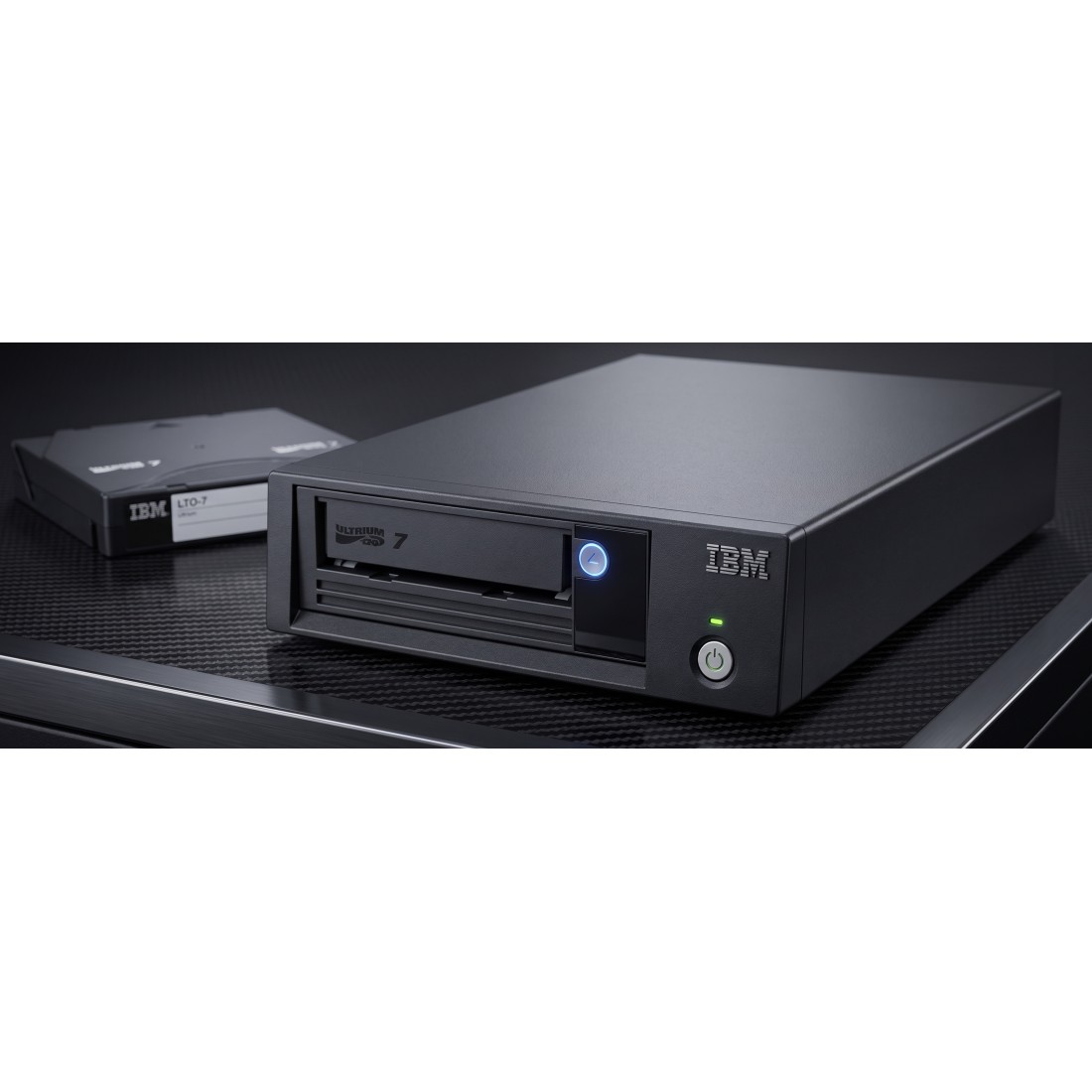 IBM TS2270 3580-H7S is an external LTO7 Half-High SAS Tape Drive that delivers up to 300 MB/sec native transfer rates, supports backups of up to 15 TB compressed capacity with 2.5 to 1 compression or up to 6 TB native capacity and supports encrypting backups. The IBM TS2270 3580-H7S LTO7 Half-High SAS Tape Drive has a 6 Gbps dual-port SAS interface that can be used with IBM i, AIX, Linux, Sun Solaris, Unix and Windows servers. The IBM TS2270 3580-H7S LTO7 Half-High SAS Tape Drive can read and write to LTO7 Ultrium 7 and LTO6 Ultrium 6 cartridges, and can read LTO5 Ultrium 5 data cartridges. The IBM TS2270 3580-H7S LTO7 Half-High SAS Tape Drive is available as a stand-alone or rack mountable unit. The IBM TS2270 3580-H7S LTO7 Half-High SAS Tape Drive enclosure width enables two TS2270 tape units to be mounted side by side in a 19-inch IBM server rack mount shelf kit that requires 2U of rack space.