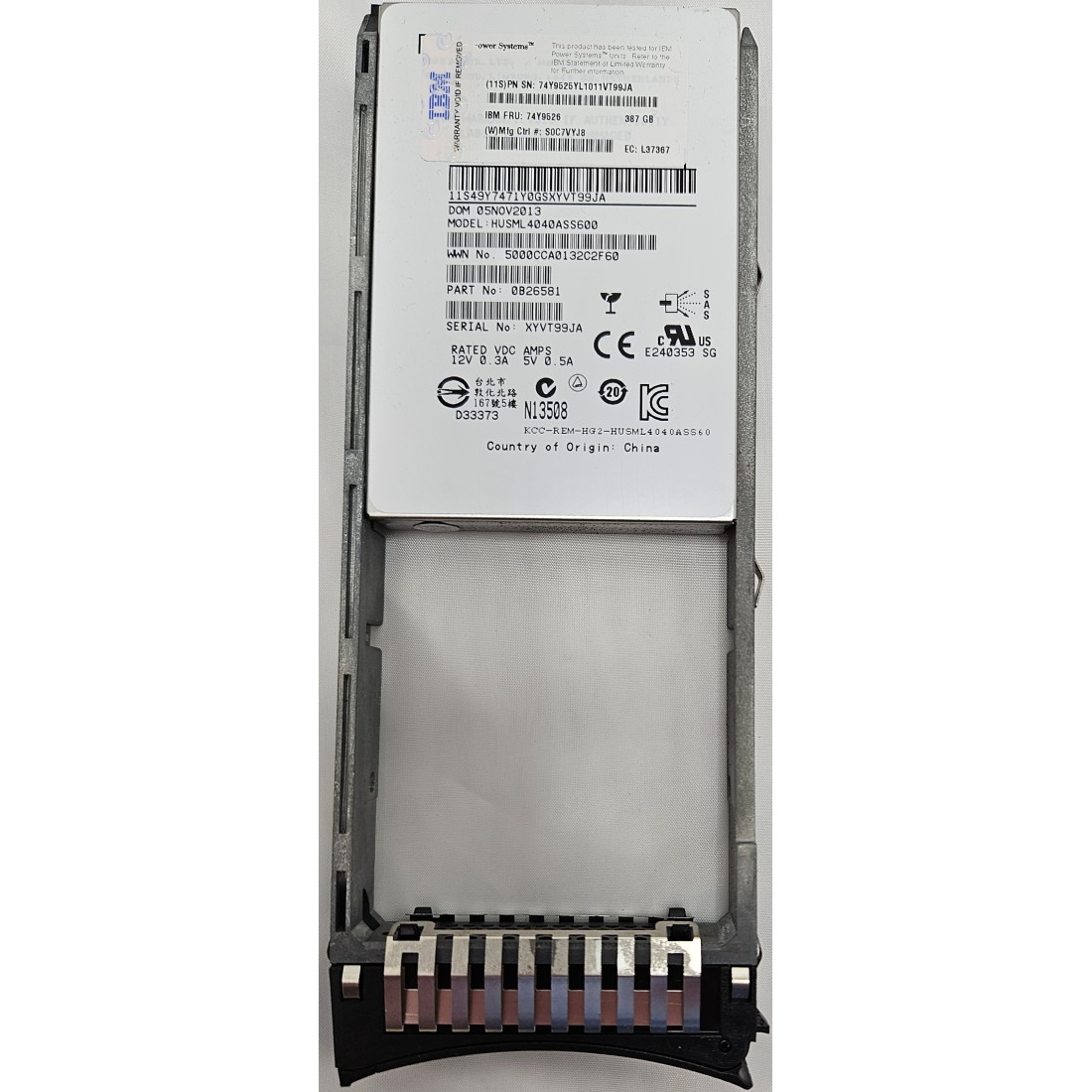 IBM 58B9 387GB SFF-2 SSD with eMCL is a SFF 2.5-inch SAS Solid State Drive, and has the following part numbers 00E8673 00LY195 74Y9526 74Y9525 49Y7471 00LY163 IBM 58B9 387GB SFF-2 Enterprise SSD can be installed in SFF-2 SAS bays of an IBM EXP24S 5887 I/O drawer for IBM i, AIX, Linux or VIOS systems. The IBM 58B9 SSD can have the following feature codes EL19, EL1L, ES0C, ES0D, ES19, ES1A, ES2D and ES2C are all physically identical, but have different feature codes which specify how the SSD is used. The IBM 58B9 Enterprise SSD with eMLC is no longer sold as new, only refurbished or used prices will be provided. All IBM Power systems and parts are IBM Certified, include free technical support, warranty and eligible for IBM Maintenance and support contracts.