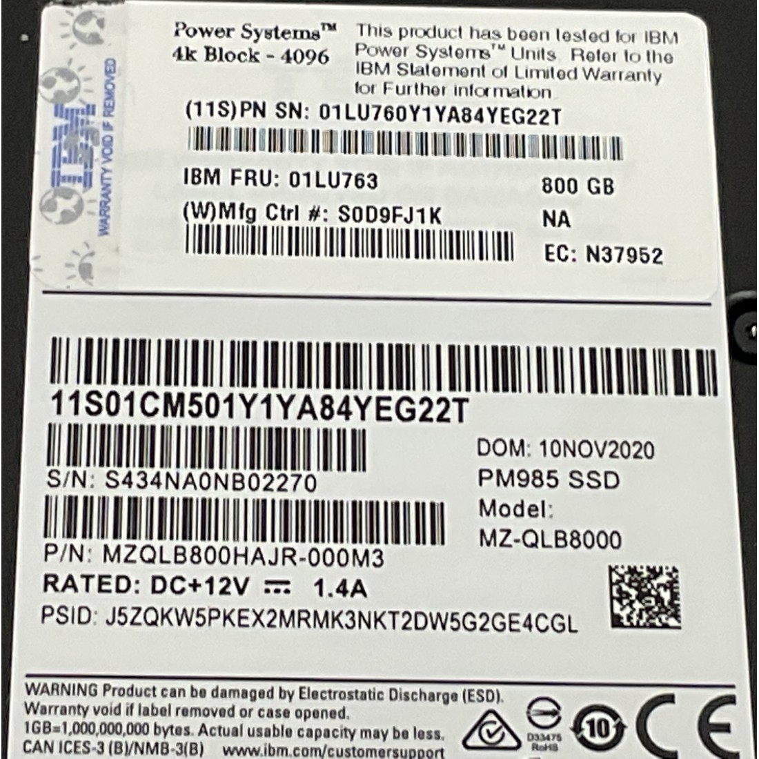 IBM 5B53 02YC724 02YC738 ES3A ES5A ES5B EKF2 ELYA 800GB Enterprise SSD NVMe