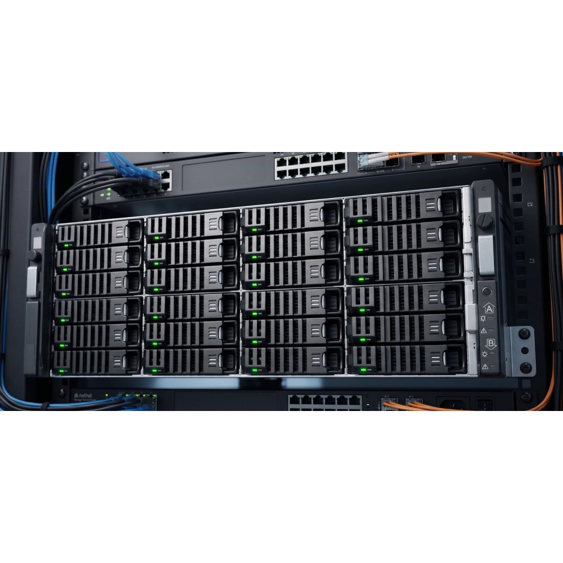 The CIT3324 is an IBM i VTL that emulates common IBM Tape Drives and Libraries, is capable of delivering up to 2 GB/s transfer rates and supports storing up to 2.5 PB of IBM i backups with expansion. The CIT3324 IBM i Virtual Tape Library is transparent to IBM i backup software and does not require changing existing backup processes. The CIT3324 IBM i VTL supports option 21 IPL, as well as IBM i Backup Commands, BRMS, Robot, Tivoli, LXI and other IBM i backup software running on the IBM i. The base CIT3324 VTL chassis has twenty-four disk slots that supports up to 440 TB of IBM i backups, and supports 6 parallel backup streams for backing up 6 LPARs simultaneously, which can be upgraded to support additional parallel backup streams for additional LPARs with a software license. The CIT3324 IBM i VTL supports storing up to 2.5 PB of IBM i backups via two 60 bay expansion units for a total of 144 disk drive slots. The CIT3324 IBM i VTL alternatively supports attaching two 24 bay expansion units.