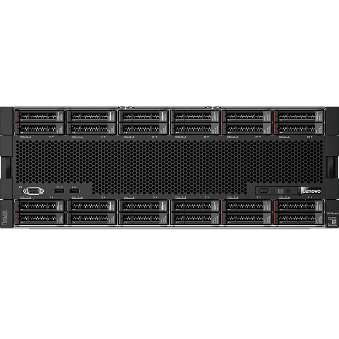 The Lenovo ThinkAgile HX7820 is a 4U rack-mount appliance that supports four processors, up to 6 TB of 2666 MHz TruDDR4 memory, 16x SAS/SATA and 8x AnyBay SFF hot-swap drive bays with an extensive choice of SAS/SATA SSDs and SAS HDDs, and flexible network connectivity options with 1/10 GbE RJ-45, 10 GbE SFP+, and 10/25 GbE SFP28 ports. The Lenovo ThinkAgile HX7820 Nutanix appliance is optimized for high-performance workloads such as databases, big data, SIEM, SYSLOG, Microsoft applications, Cloud, e-mail, and workload-balancing clusters.
