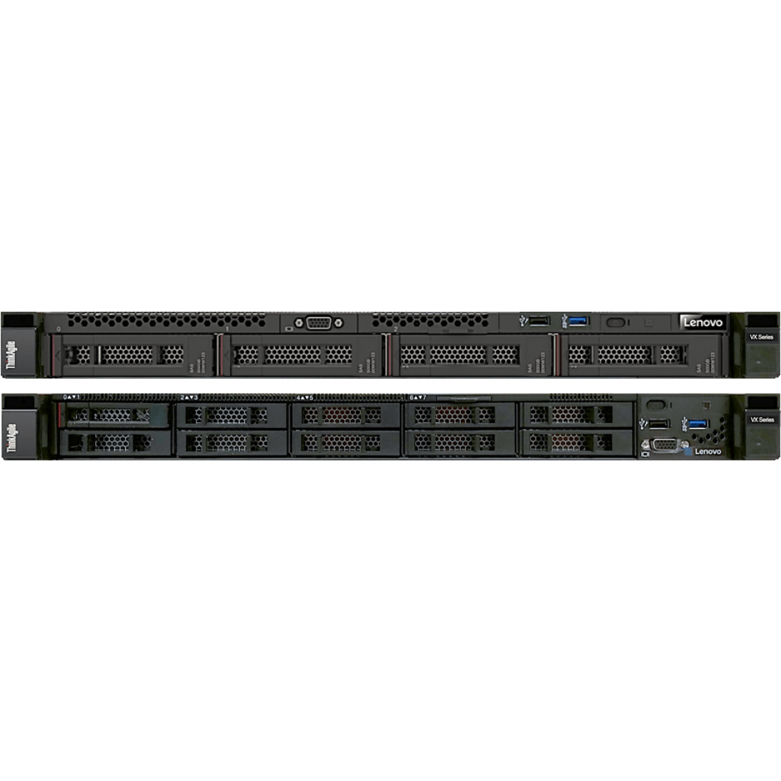 The ThinkAgile VX 1SE Certified Node is a 1U rack-mount system that supports one processor, up to 64 GB of TruDDR4 memory with up to 2666 MHz memory speeds, 4x 3.5-inch or up to 10x 2.5-inch SAS/SATA drive bays with an extensive choice of SATA SSDs and SAS HDDs, and flexible network connectivity options with 1/10 GbE RJ-45, 10 GbE SFP+, and 10/25 GbE SFP28 ports.