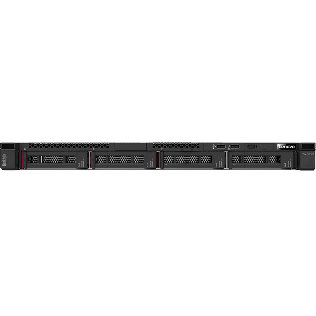 The ThinkAgile VX2320 is a 1U rack-mount appliance that supports up to two processors, up to 3 TB of 2666 MHz TruDDR4 memory, 4x SAS/SATA LFF hot-swap drive bays with an extensive choice of SAS/SATA SSDs and NL SAS HDDs, and flexible network connectivity options with 1 GbE RJ-45, 1/10 GbE RJ-45, 10 GbE SFP+, and 10/25 GbE SFP28 ports.